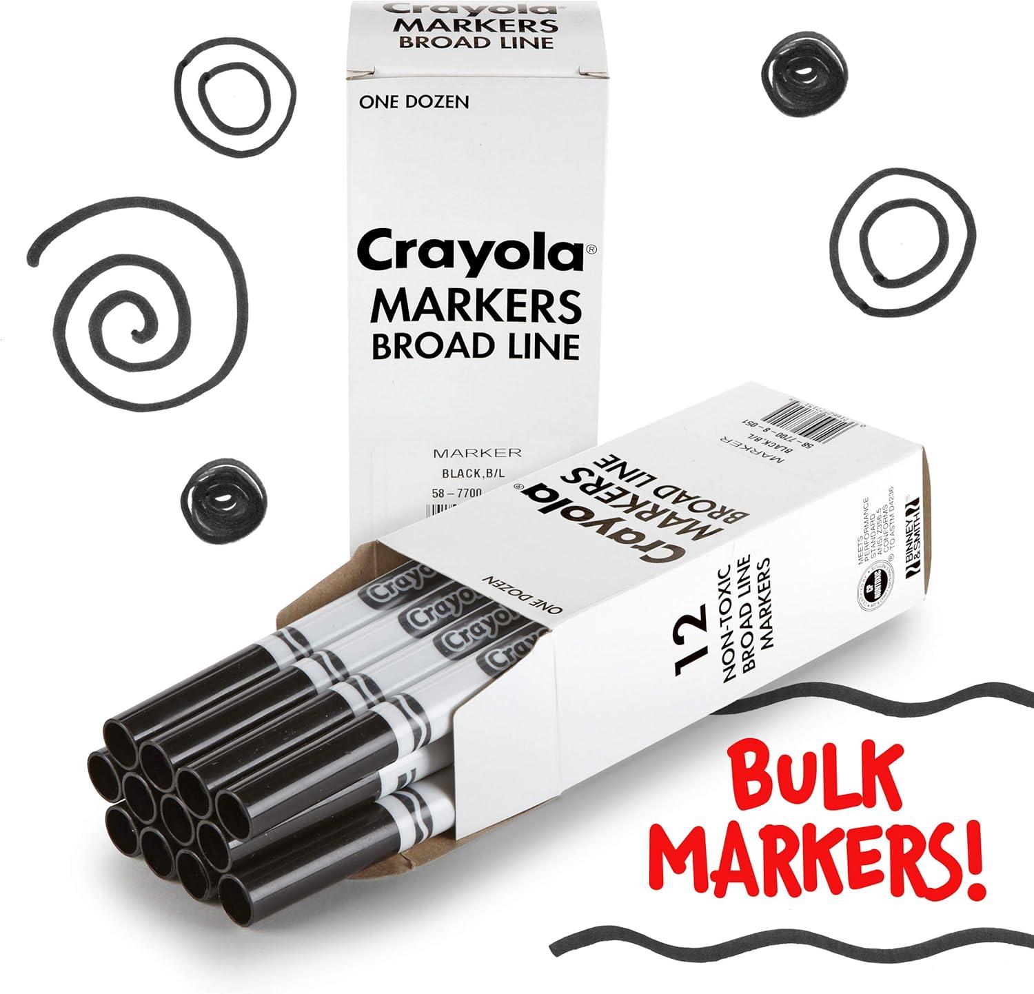 Crayola Broad Line Markers – Black (12ct), Markers for Kids, Bulk School Supplies for Teachers, Nontoxic, Marker Refill with Reusable Box(Black)