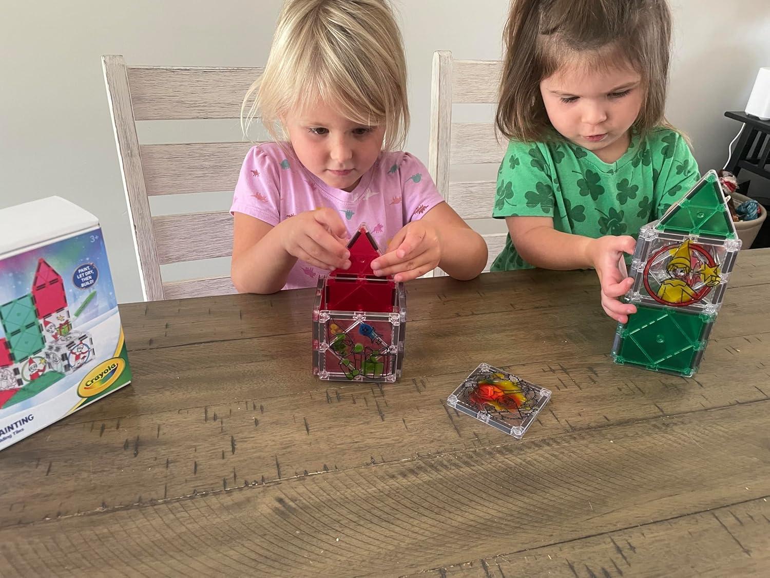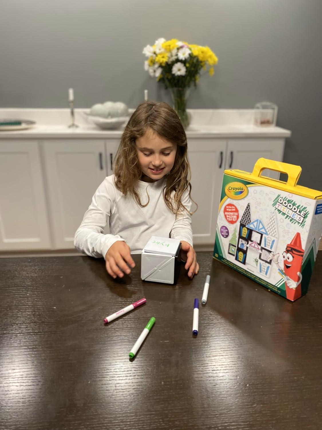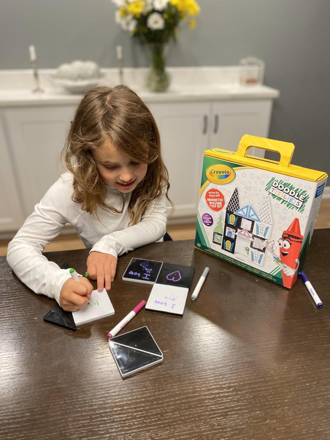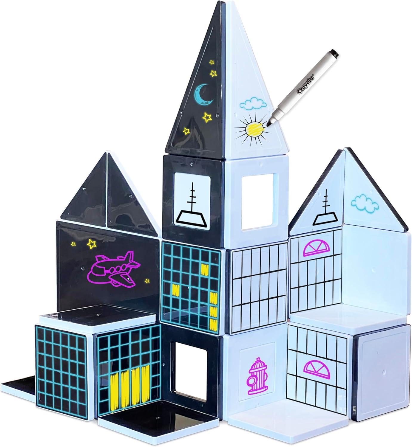 CreateOn Crayola Doodle Magnetic Tiles, Building Set for Kids, Magnetic Building Toys for Kids, STEM Travel Toys for Boys and Girls Ages 3+, 14-Piece Set (Doodle)(Doodle)