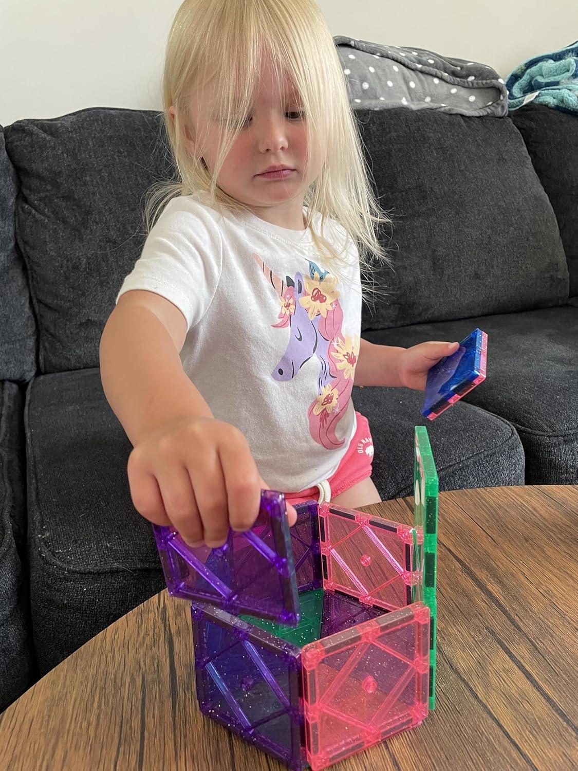 CreateOn Crayola Bold Magnetic Tiles, Building Set for Kids, Magnetic Tiles, Kids’ Building Toys, STEM and Montessori Toys for Boys and Girls Ages 3+, 24-Piece Set (Bold)(Glitter)