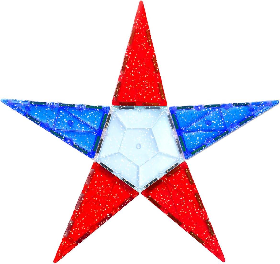 CreateOn Crayola Doodle Magnetic Tiles, Building Set for Kids, Magnetic Building Toys for Kids, STEM Travel Toys for Boys and Girls Ages 3+, 14-Piece Set (Doodle)(Red White and Blue)
