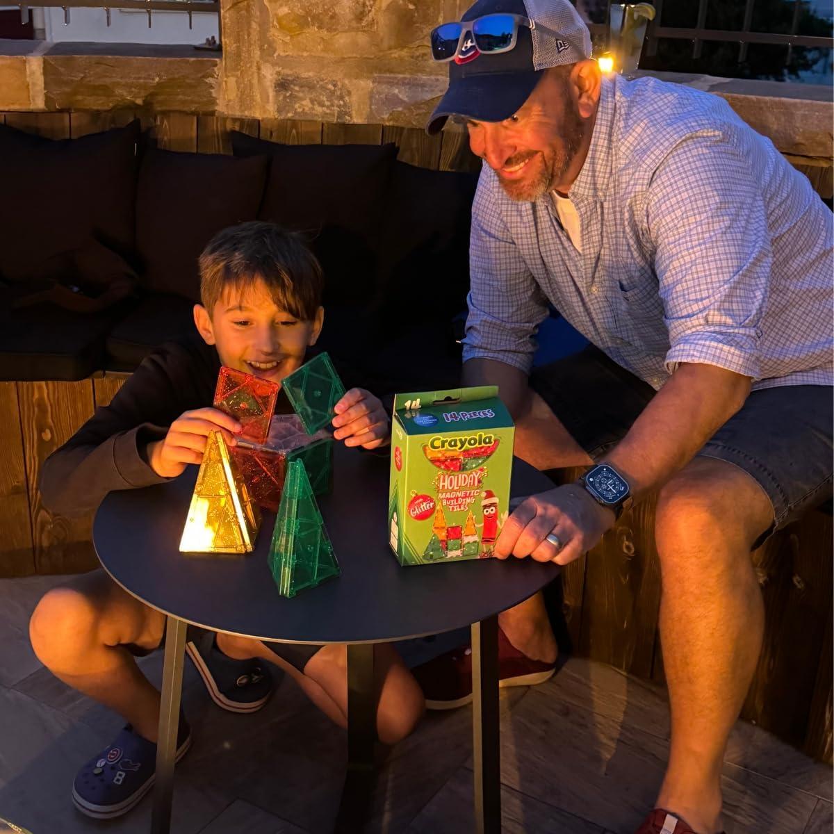 CreateOn Crayola Doodle Magnetic Tiles, Building Set for Kids, Magnetic Building Toys for Kids, STEM Travel Toys for Boys and Girls Ages 3+, 14-Piece Set (Doodle)(Holiday Glitter)