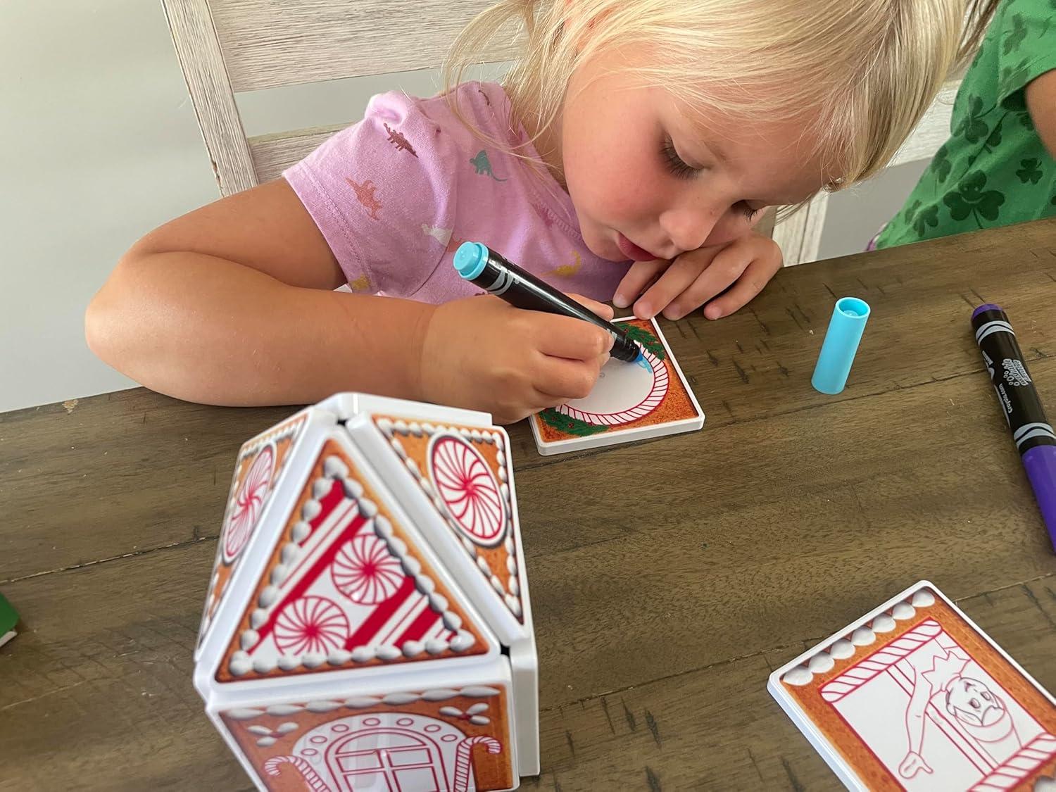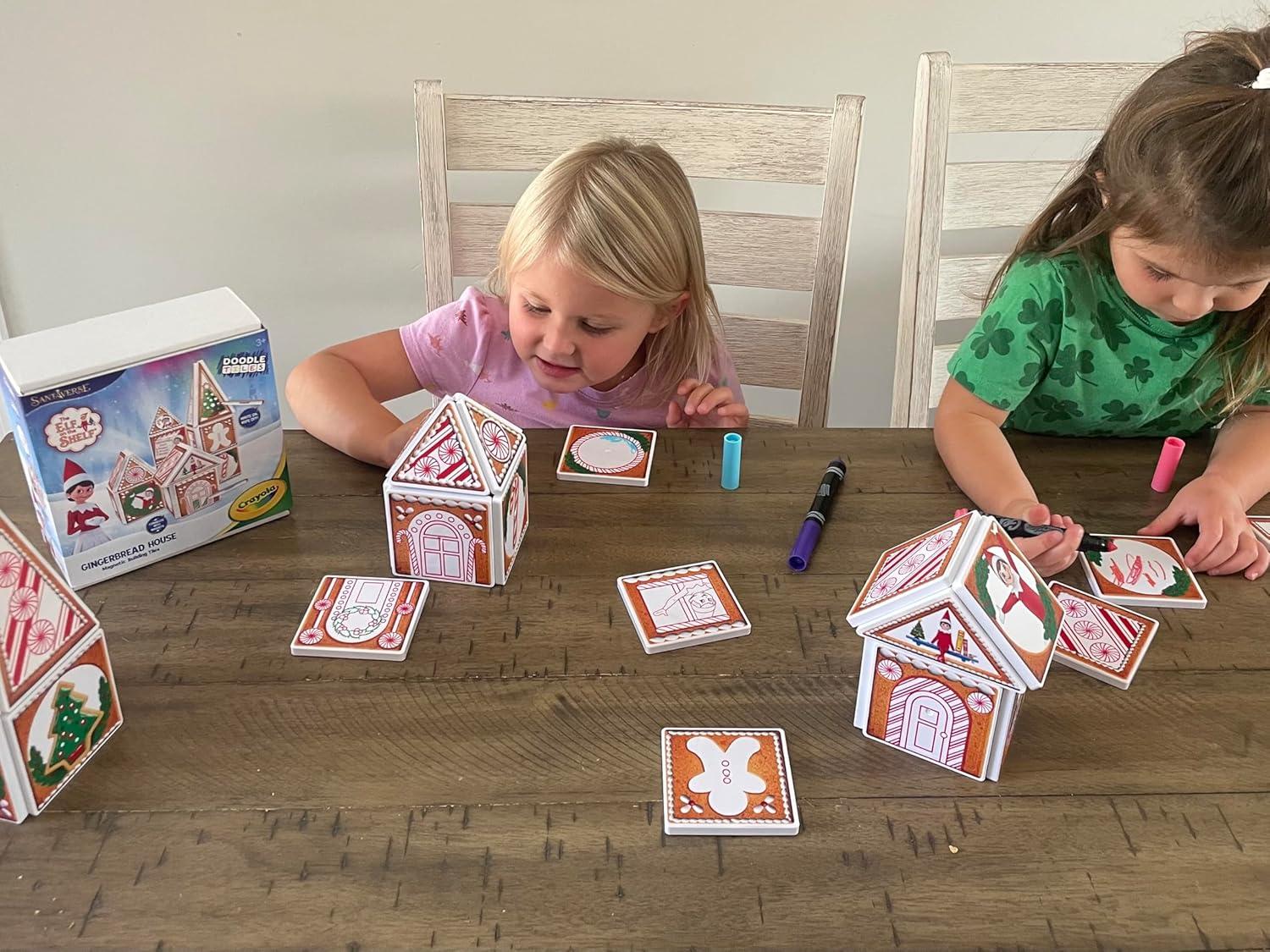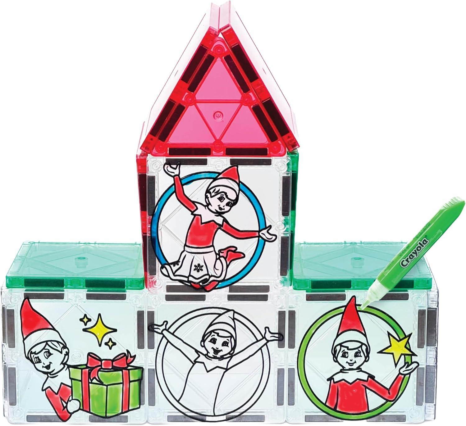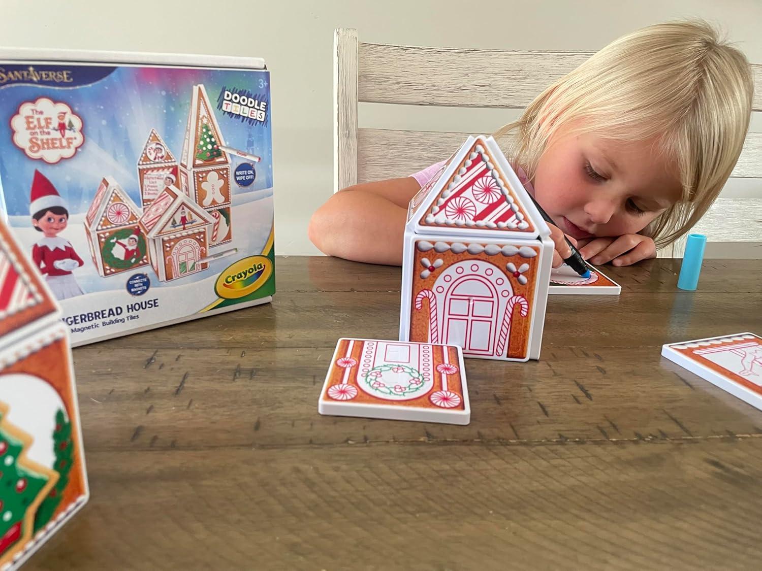 CreateOn Crayola Elf on The Shelf Gingerbread House – Magnetic Building Tiles Kit with Crayola Markers, Christmas Holiday Craft Toy, 33-Piece Magnetic Construction & Coloring Set for Kids Ages 3+