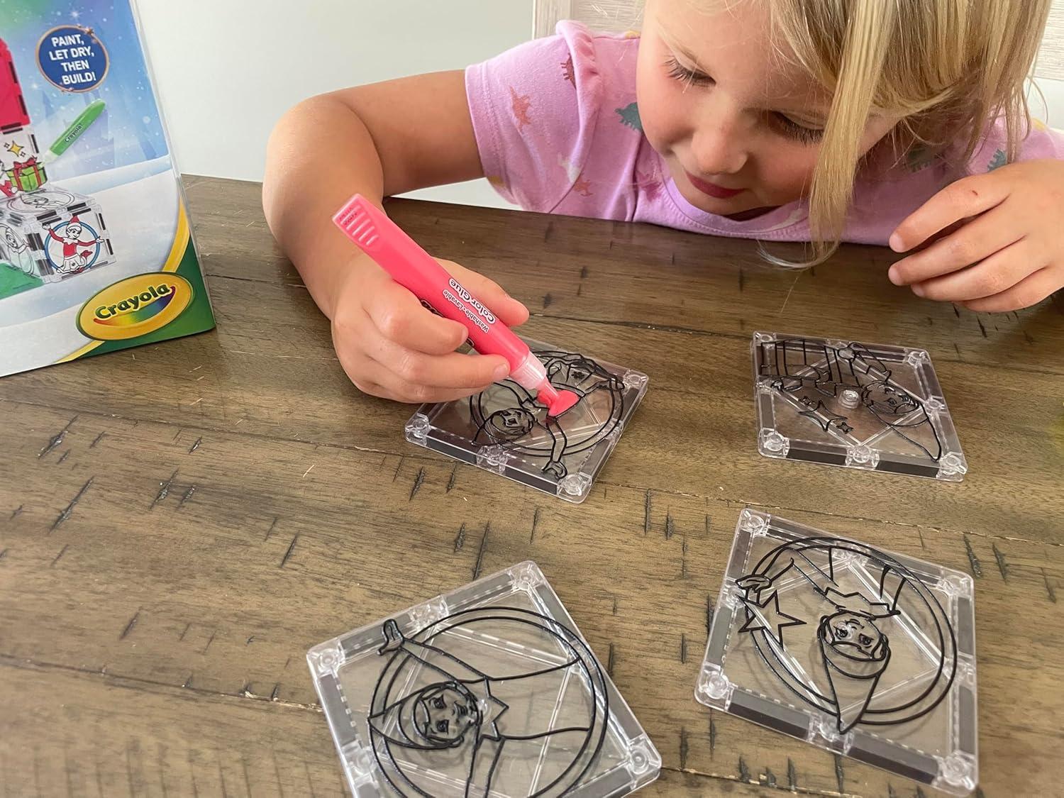 CreateOn Crayola Elf on The Shelf Paint On Tiles, Magnetic Building Tiles Kit with Crayola Paint Tubes | Christmas Holiday Craft Toy | 18-Piece Magnetic Construction & Painting Set for Kids Ages 3+