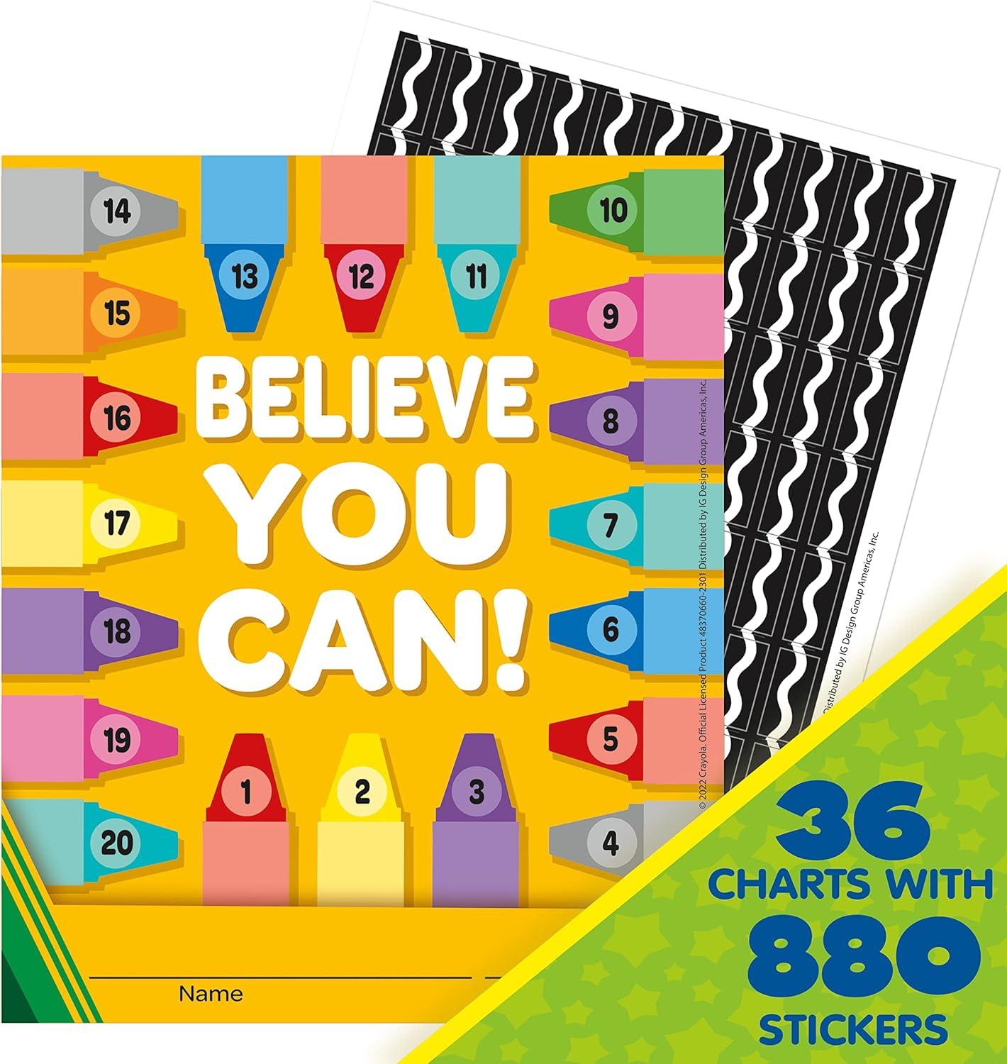 Eureka Crayola Mini Student Sticker Reward Charts for School or Home, 5″ x 6″, 36 Charts and Over 700 Stickers(OS)