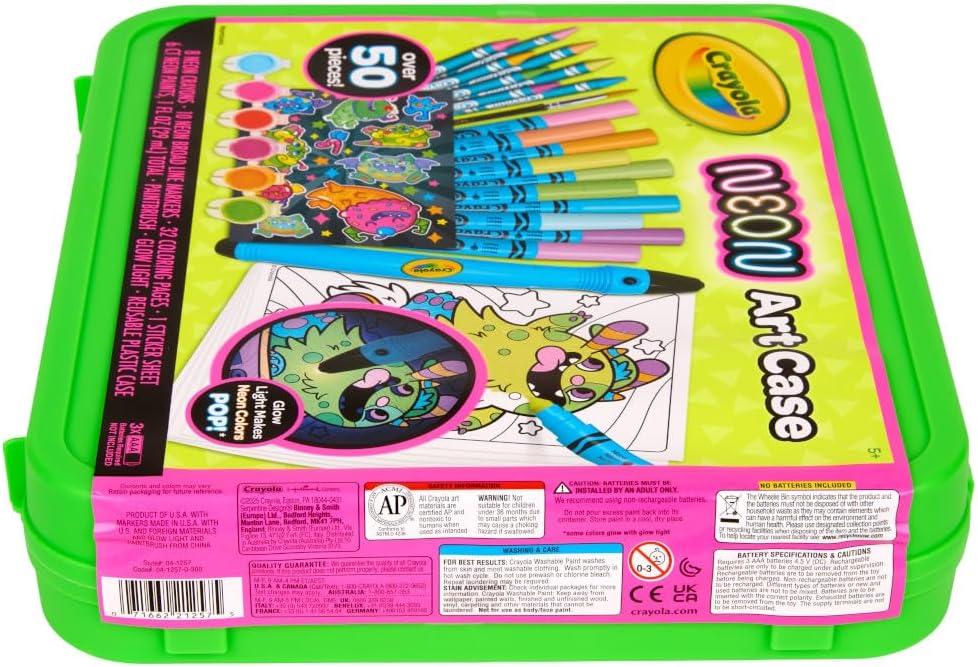 Crayola All That Glitters Art Case (50+pcs), Glitter Crayons & Coloring Supplies, Kids Art Set, Gifts for Girls & Boys, Ages 5+(Neon)