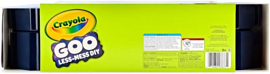 The Crayola All-in-1 Sensory Station, Galactic Goo offers the ultimate sensory play experience for kids! This all-in-one sensory station features textured panels that elevate sensory play and doubles as a mixing bowl. The set includes 4 white Goo powders and 4 exciting mix-ins: moon confetti, star confetti, sand, and fishbowl beads. Add some sparkle with 2 mini glitter glues and display your creations in the alien slime display. With 4 Mini Goo cups with lids, 4 labels, and 4 ultra-clean washable markers, kids can customize their goo colors and store their creations. The special formula ensures the goo won't stick to clothing, hair, or hands, making it a parent-approved, less-mess slimy goo solution. Crayola DIY Goo sets with a mixing cup and stick, so no more borrowing your parents' food containers! This DIY goo solution is slimy, stretchy, and perfect for making, customizing, and sharing. Get ready for hours of creative, gooey fun with Crayola's Galactic Goo!