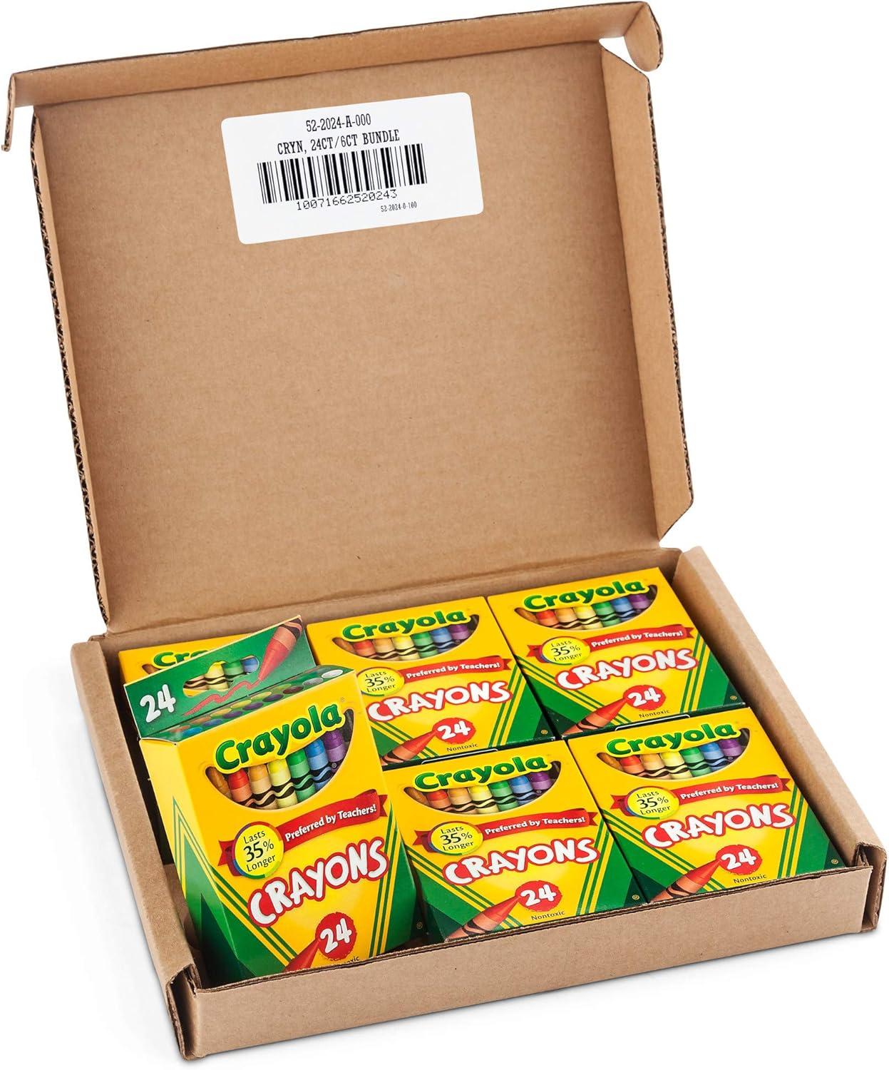 Stock up on Crayola Jumbo Crayons with 6 colorful boxes of 16ct crayons! Large crayons are perfect for the little hands of young artists, with a broader size that allows kids to form a comfortable grip. The larger size also means more long-lasting color! Each stick is double wrapped for extra strength and security, making them ideal for even the most enthusiastic creators. Keep on hand for busy play dates or tuck a few boxes away for a rainy day or creative surprise. This bulk crayon collection contains plenty of art supplies for classrooms, group activities, home art projects, and more! Safe and nontoxic, ages 3 and up. This product is ACMI Certified.
