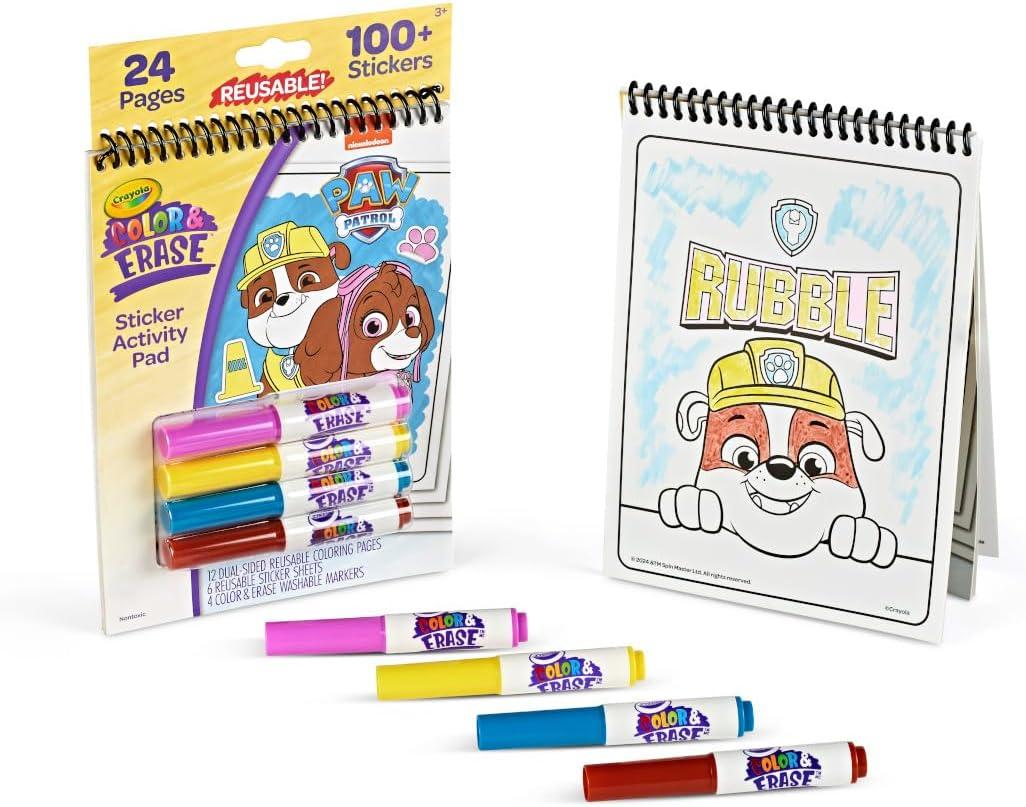 CRAYOLA PAW PATROL ACTIVITY PAD: Features 12 Dual-Sided 6” x 8” Reusable Coloring Activity Pages, 4 Color & Erase Washable Markers, and 6 Reusable Sticker Sheets including over 100 Reusable Stickers.