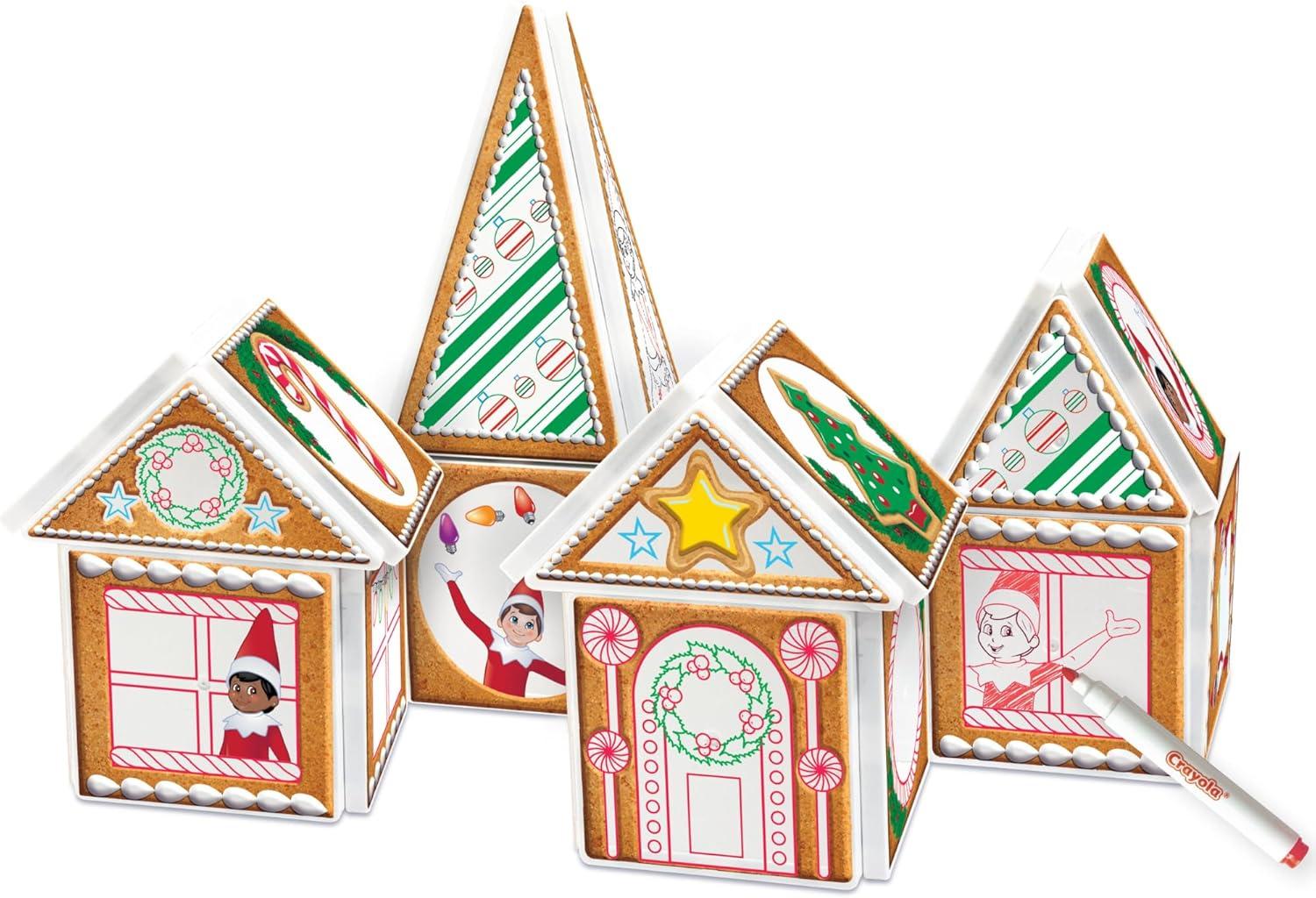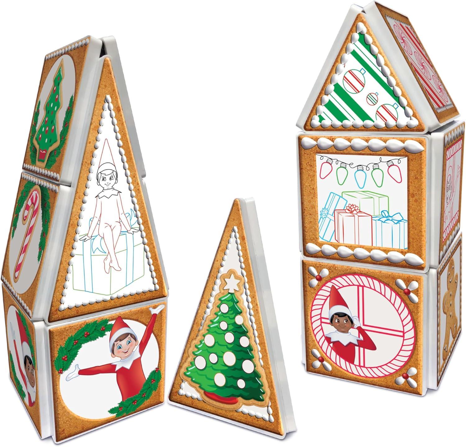 CreateOn Crayola Elf on The Shelf Gingerbread House – Magnetic Building Tiles Kit with Crayola Markers, Christmas Holiday Craft Toy, 33-Piece Magnetic Construction & Coloring Set for Kids Ages 3+